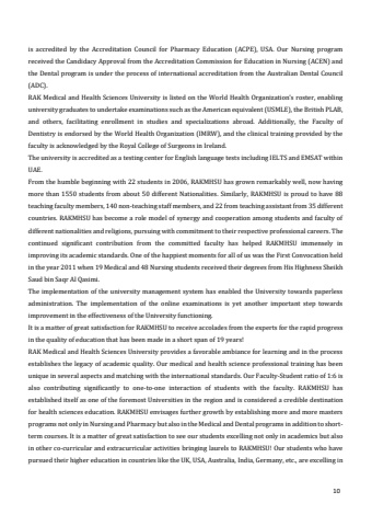 44.10 Description of the Electronic Platforms used for E-Learning..................................................235. POLICIES GOVERNING STUDENT AFFAIRS..................................................................................................245.1 Identification Cards.....................................................................................................................................245.2 Dress Code......................................................................................................................................................245.3 Laboratory Coats & Scrub Suits..............................................................................................................265.4 University Policy on Research................................................................................................................275.4.1 Organization and procedure of Students%u2019 Research:............................................................275.4.2 Policy on Students%u2019 Support for Participation in Conferences%u2026%u2026%u2026%u2026%u2026%u2026%u2026.%u2026%u2026%u2026%u2026..295.4.3 Policy on Students%u201d Support for Publications in Scientific Journals.............%u2026%u2026%u2026%u2026%u2026%u2026.31 5.5 No Smoking Regulations%u2026%u2026%u2026%u2026%u2026%u2026%u2026%u2026%u2026%u2026%u2026%u2026%u2026%u2026%u2026%u2026%u2026%u2026%u2026%u2026%u2026%u2026%u2026%u2026%u2026%u2026%u2026%u2026%u2026%u2026%u2026...%u2026%u2026..315.6 Students%u2019 Participation in University Activities...............................................................................315.7 Community Engagement...........................................................................................................................326. STUDENT COUNSELING, CAREER SERVICES & ACADEMIC ADVISING.............................................336.1 Counseling Services....................................................................................................................................336.1.1 Personal Counseling: individual and group counseling......................................................336.1.2 Academic Counseling........................................................................................................................336.1.3 Learning Support................................................................................................................................336.1.4 Personality Development Workshops........................................................................................336.1.5 Crisis Intervention Assistance.......................................................................................................346.2 Career Counseling and Career Planning.............................................................................................366.2.1 Career Placement Services.............................................................................................................356.3 Academic Advising at RAKMHSU...........................................................................................................356.3.1 Vision.......................................................................................................................................................356.3.2 Mission....................................................................................................................................................366.3.3 Goals........................................................................................................................................................366.3.4 Structure and Nature of Academic Advising............................................................................366.3.5Advisor%u2019s Roles and Responsibilities..........................................................................................376.3.6 Advisees Roles and Responsibilities...........................................................................................376.3.7Academic Advising Process at RAKMHSU.................................................................................376.4Special Education Needs & Disability (SEND)..................................................................................386.4.1Definitions.............................................................................................................................................386.4.2Categories of People of SEND........................................................................................................39