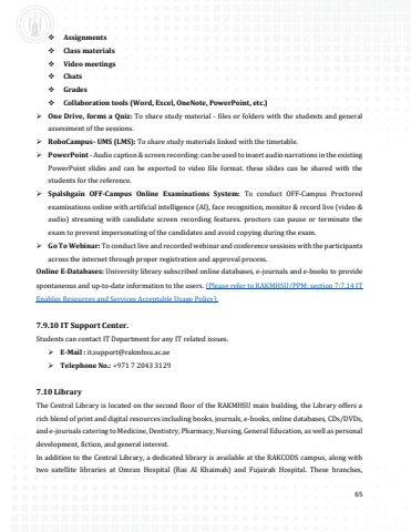 59Students who have received the lockers must comply with the following guidelines carefully:1)Keep the locker key safely and locker must be kept clean.2)Locker should not be interchanged with other students. In case it is found that you have interchanged your lockers, a fine amount of AED 50.00 [Dirhams Fifty Only] will be imposed.3)If you lose your key, duplicate key will be issued only after payment of AED 30.00 [Dirhams Thirty Only] to the University office cashier. The official receipt should be shown to in-charge person who is responsible for issuing the spare key. The process will take at least two working days.4)If any student damages the locker, the necessary fine will be imposed for repairing or replacing the locker and disciplinary action will be taken against the student as per the university policy.5)Students are responsible for their locker and belongings inside it.6)The same locker will be available for students till the completion of the program.7)The locker key should be returned at the end of your program or whenever you discontinue the studies in RAKCOP.8)All the lockers are located in the ground floor new academic block near lecture hall # 528.Note: Mr. Adeel Khan and Mr. Abdu Salam Chittakath Kuilath(Office # 409) will be In-charge of the Lockers. Kindly contact for any issues related to lockers.7.8.12RAK College of Nursing RAKCON Student Locker RegistrationGuidelines for the Usage of Lockers in RAKCONLockers will be issued to the first year BSN students only who require them.Students who have received the lockers from RAKCON must follow the guidelines given belo1)Keep the locker key safely and locker must be kept clean.2)Locker should not be interchanged with other students. In case it is found that you have interchanged your lockers, a fine amount of AED 50.00 [Dirhams Fifty Only] will be imposed.3)If you lose your key, duplicate key will be issued only after payment of AED 30.00 [Dirhams Thirty Only] to the University office cashier. The official receipt should be shown to in-charge person who is responsible for issuing the spare key. The process will take at least two working days.4)If any student damages the locker, the necessary fine will be imposed for repairing or replacing the locker and disciplinary action will be taken against the student as per the university policy.5)Students are responsible for their locker and belongings inside it.6)The same locker will be available for students till the completion of the program.7)The locker key should be returned at the end of your program or whenever you discontinue the studies in RAKCON.