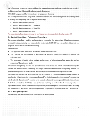 75institution.%u2022The Student Council shall detect talents, abilities and skills of students, enhance them, and develop the spirit of innovation among the students.Responsibilities of the Student Council:1.Setup of the internal regulations of the council, revise and amend the same in coordination with the university administration.2.Approval of work programs of different council committees and follow up execution thereof.3.Coordinating work between the council committees in the university or with other educational institutions councils.4.Coordinating work with internal institutions of the country if required.5.Approval of the final accounts of the council.6.Setup of the annual budget of the council, committees thereof and their distribution of financial credits to committees.7.Controlling the work of council committees and the various Activity Clubs, and their compliance with general and special conditions and provisions of the council and obtaining required approvals and licenses.8.Submission of regular reports concerning work of committees to the administration of university for perusal and receiving instructions.8.4 Eligibility Criteria for Election/Nomination to the Council%u2022Above 75% attendance in the class for the previous academic year.%u2022Should not have failed in any course in the past academic year.%u2022No disciplinary action should have been taken against the candidate in the past two academic years.%u2022President, Vice President and General Secretary candidates must possess a minimum GPA of 3.0%u2022President and Vice President should be UAE nationals only.%u2022Candidates for all other posts must possess a minimum GPA of 2.5%u2022The application form should be obtained from the Office of Student Affairs, completed, signed and returned before the last date8.5 Other Rules and Guidelines%u2022RAKMHSU shall have only one student council, where study conditions require, another student council may be established after obtaining the approval of the Minister of Higher Education.%u2022Only senior students of all colleges, who are UAE nationals, are eligible for the post of President of the student council.%u2022The college representatives will be elected only by the students of the particular college via an online voting process.